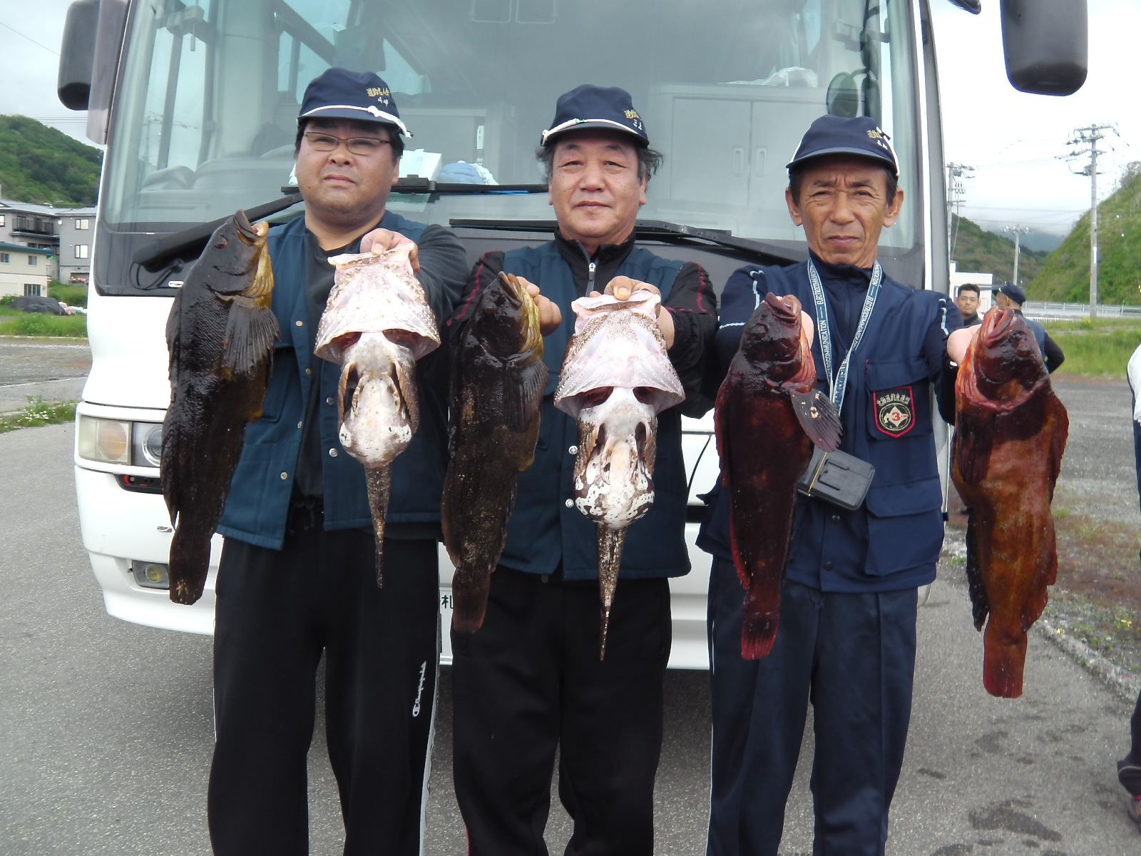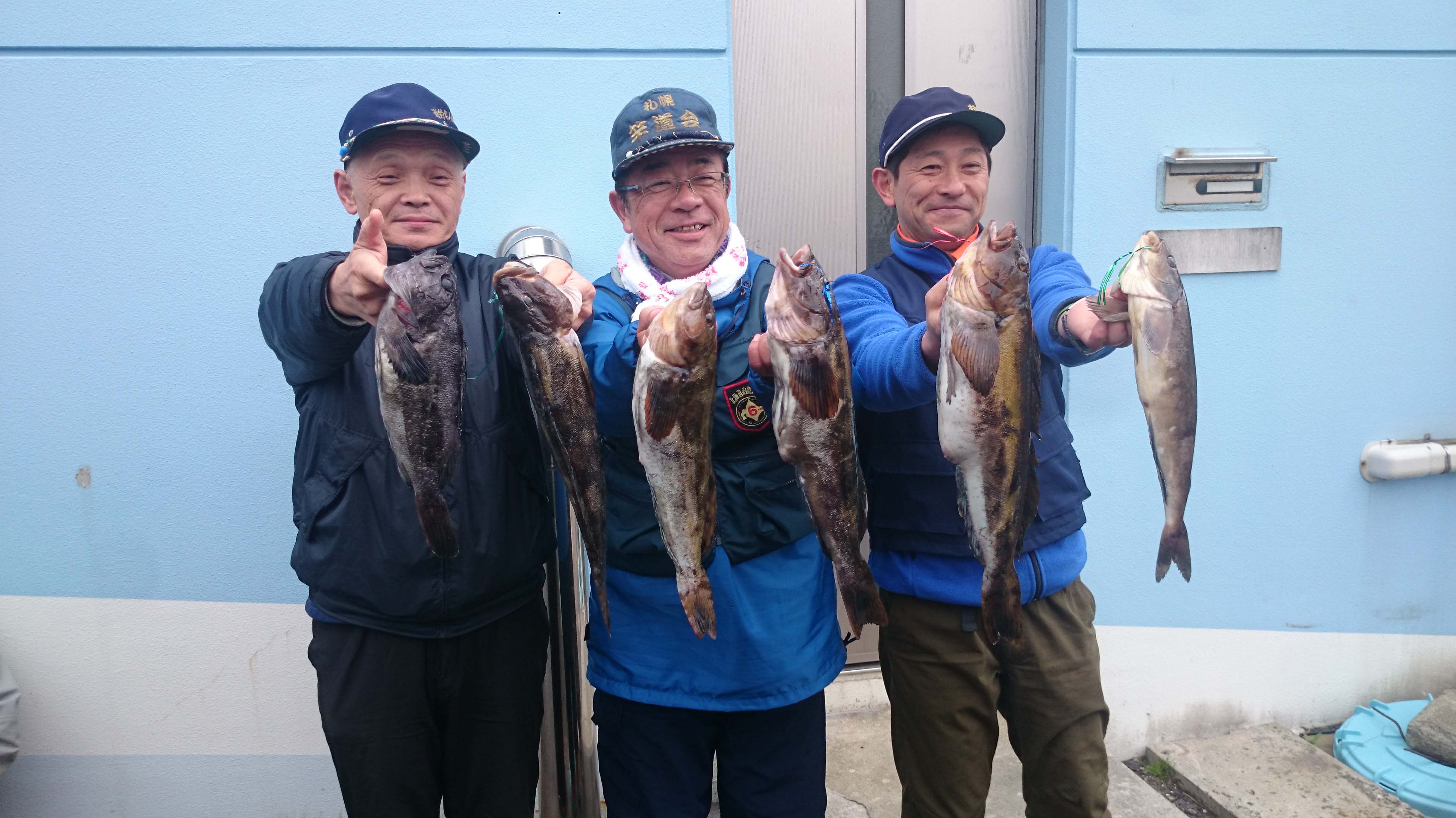 天気の予報は風が強まるだの雨が降るだのとなってはいたものの風は弱まり雨は降らずに晴天になる これで釣れれば言う事なし しかしアブラコの居る所にはいいカジカが出ないしアブラコの居ない所にはカジカばかりが沢山釣れる 優勝は山本君 重量14キロ半で2300点超え二位は森田君同じく2300点超え二人とも東歌別に入っての入賞となった 三位は岸君