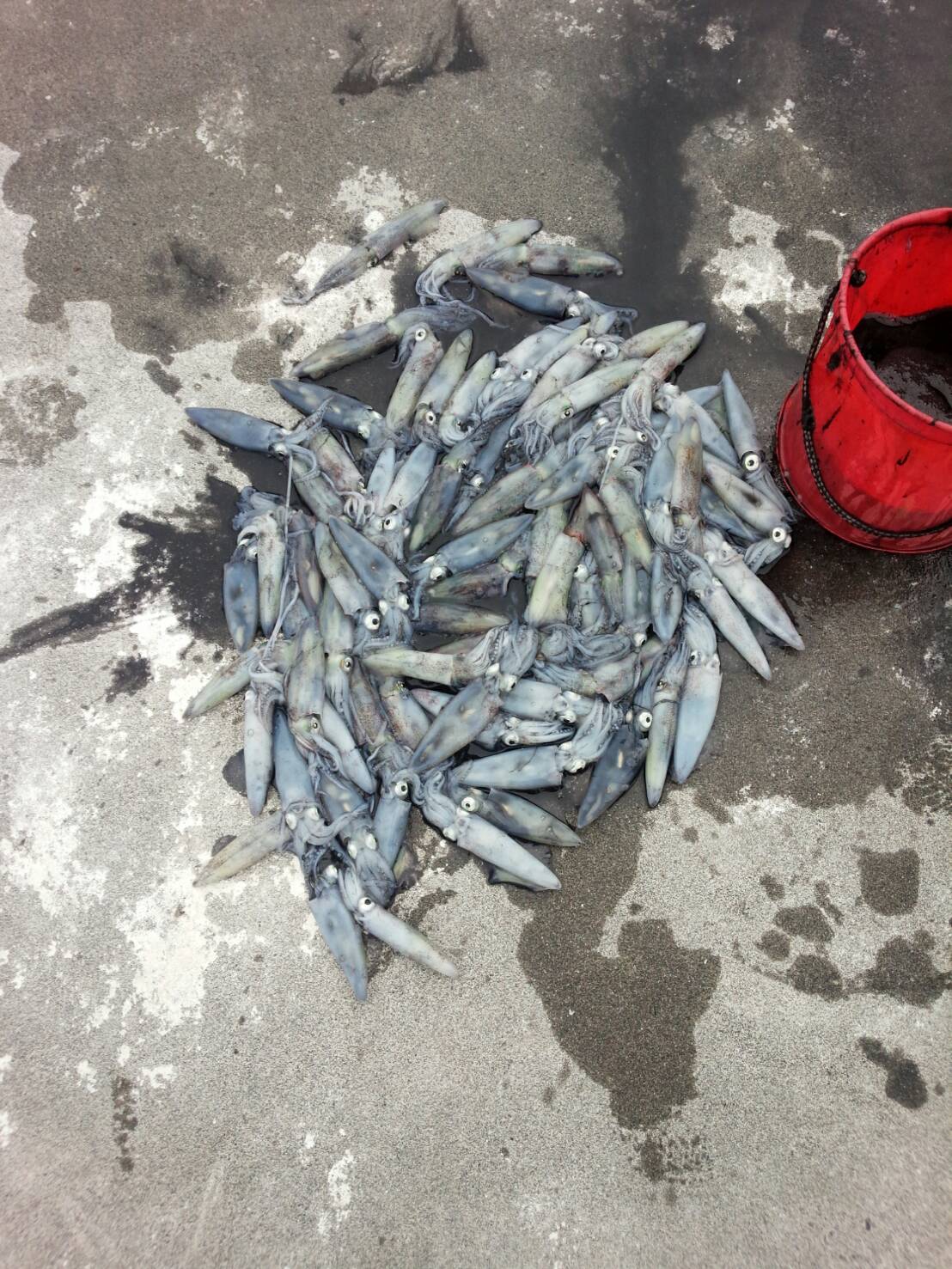 夜が明けてポツポツ釣れだし結構なクロガシラも数枚釣れました。豆イカは姿も無し